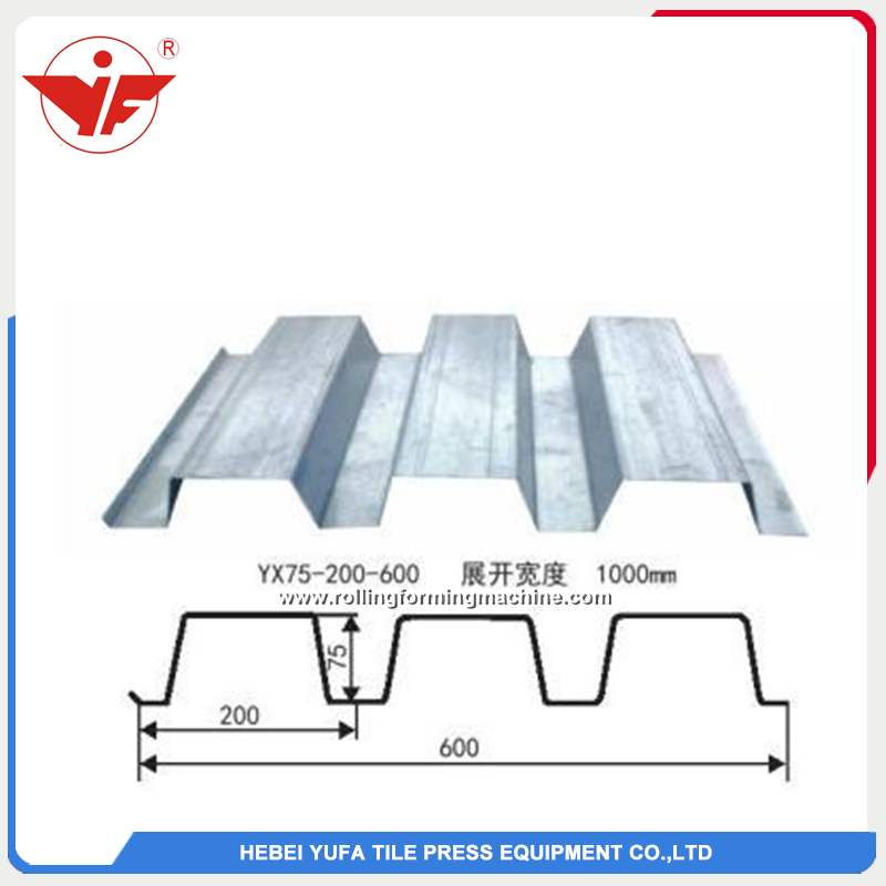 We are floor deck roll forming machine manufacturer Our company is professional in floor deck field. With best quality and cheapest price wait for u. We have many kinds of floor deck. YF51-342-1025/ YF75-230-690/ YF75-200-600/ YF76-344-688/ YF75-293-880/ YF75-230-690 YF65-185-555/ YF51-200-600/ YF51-226-678/ YF51-253-760/ YF51-250-750/ YF51-240-720 YF51-305-914/ YF50-180-720/ YF35-125-750/ YF51-330-992 And we also have steel truss floor decking machine. weld rebar on the floor deck. We can de...