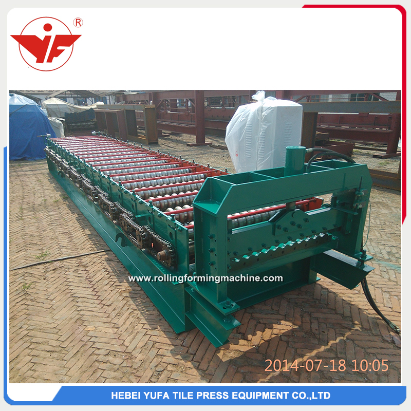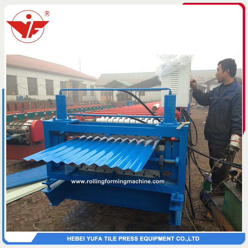 1.Description of 1064 corrugated roof sheet roll forming machine The complete corrugated roofing sheet making machine line includes de-coiler, main machine, computer controlling system and run out tables. Our machines are equipped with a computer controlling system. We simply program the pieces and length we need in the computer and the wave panel machine produces it automatically. The machines are easy to operate and running stable. 2.Corrugated panel profile:(customized is welcome)