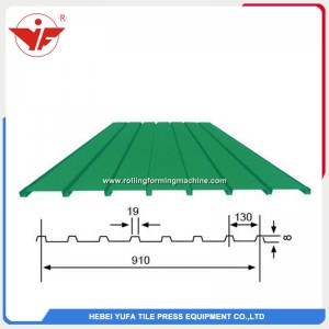 1.Description of 910 wall roof panel machine This Cold steel roofing panel roll forming machine is designed by our professionals utilizing high grade component. Steel type Roofing Panel has a beautiful appearance and bright color. It is widely used in garden, factory, resort, hotel, exhibition hall, vacationland,ancient architectures and modern villa. Customized is welcome. 2.Working process The complete line includes decoiler, forming machine, computer controlling system and run out tables...