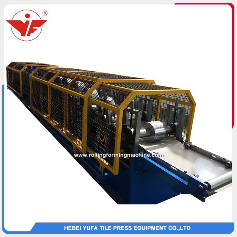 Metal rain gutter roll forming machine include one set 5 ton manual decoiler, feeding table, roll forming machine , hydraulic mould cutting and 3 meters air-operated product runout table.