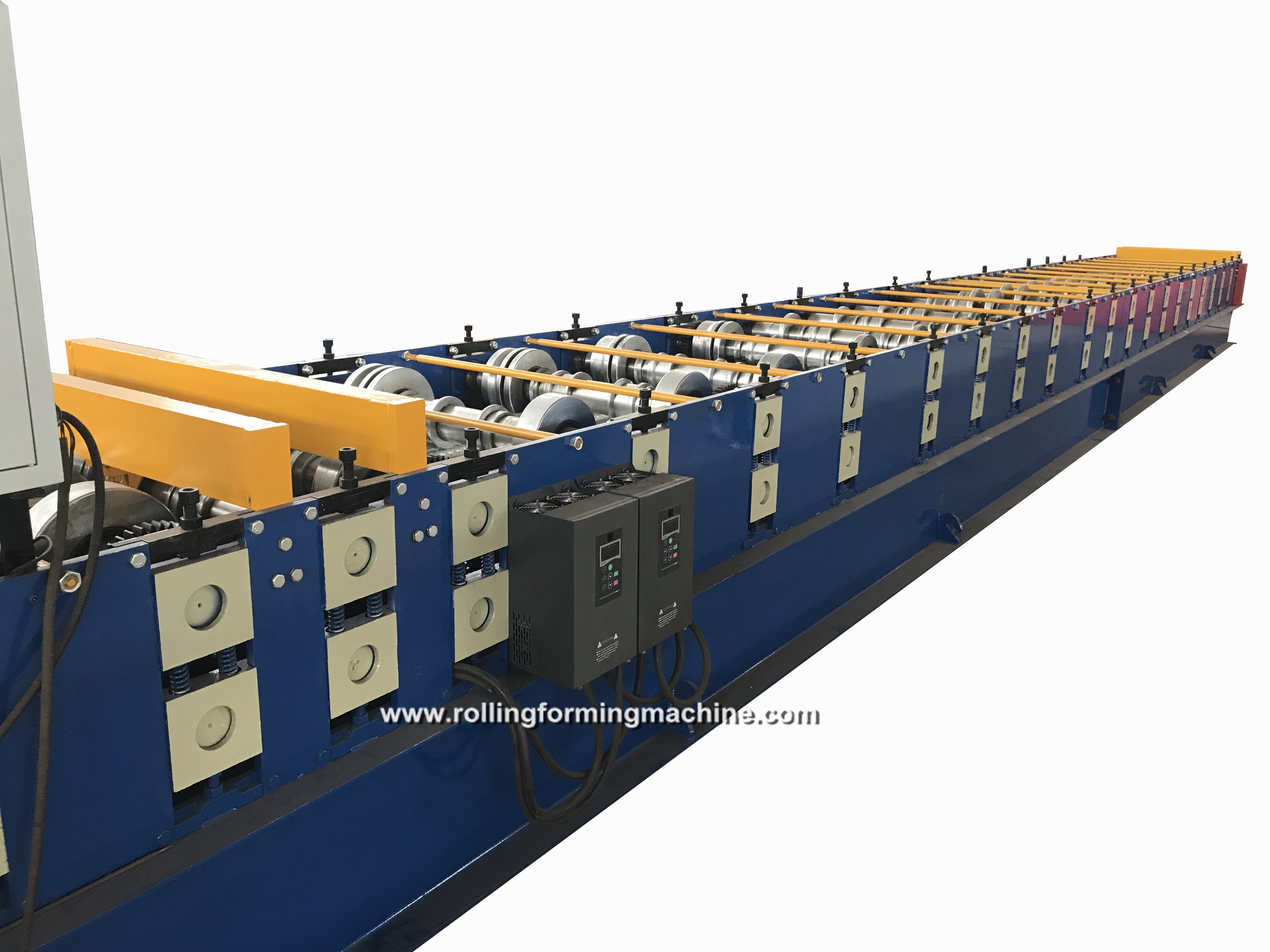 Floor deck roll forming machine include one set 5 ton manual decoiler, feeding table, roll forming machine , hydraulic cutter and receiving table.Machine is controled by Delta PLC control system, we also have Mitsibishi PLC for option.