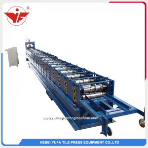 Metal rain gutter roll forming machine Metal rain gutter roll forming machine include one set 3 ton manual decoiler, feeding table, roll forming machine , hydraulic mould cutting and 3 meters air-operated product runout table. Metal rain gutter roll forming machine automatic working and controled by Delta PLC control system, we also have Mitsibishi PLC for option. Metal rain gutter roll forming machine Parameters NO Type Specification 1 Raw material Type GI ...