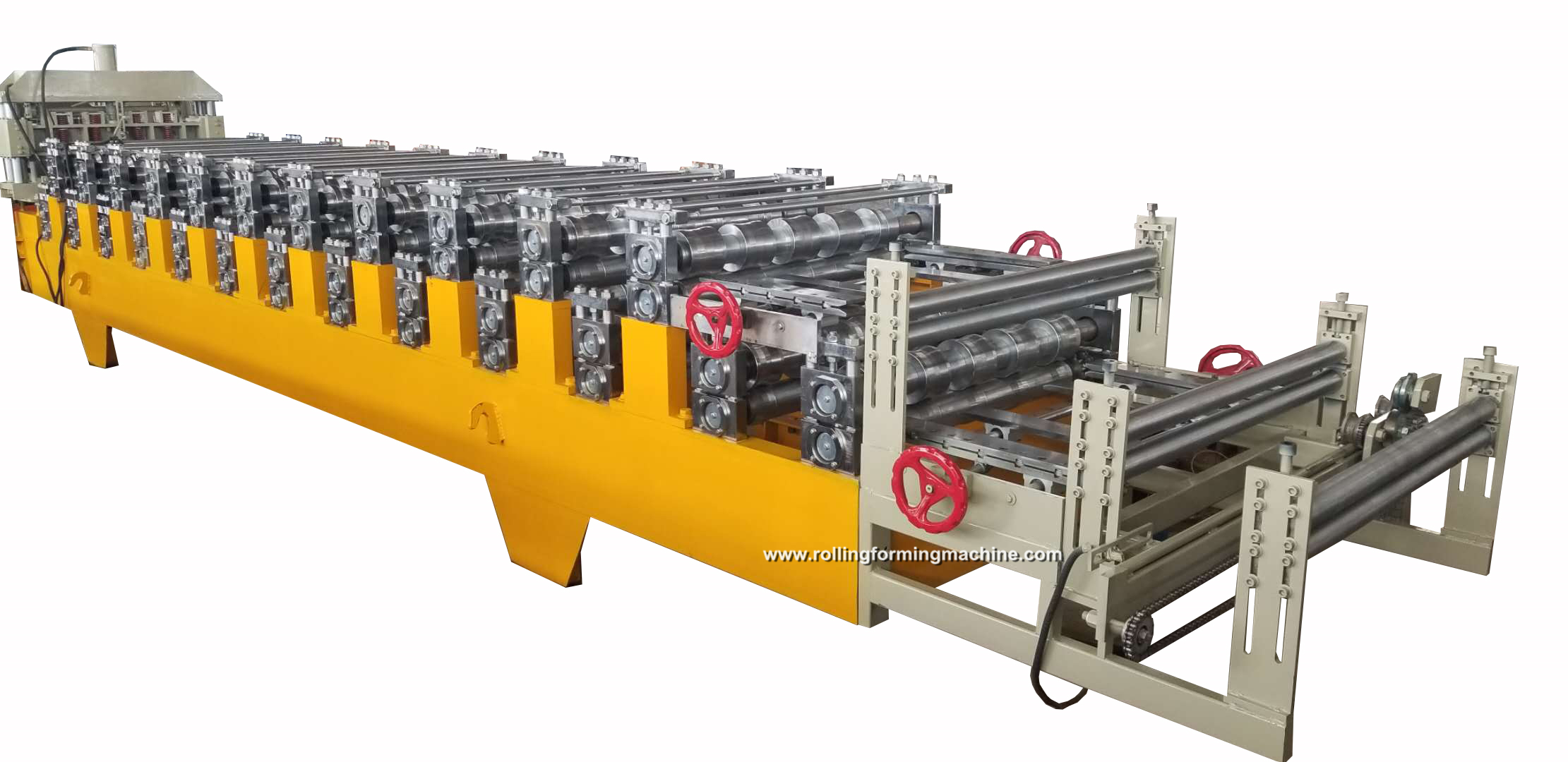 Biasa dibandingkan dengan dua mesin tunggal, mesin pembentuk gulungan lapisan dua menyimpan satu kerangka bawah, satu kotak kawalan, satu motor (sementara motor memerlukan peningkatan kuasa daripada satu mesin tunggal)