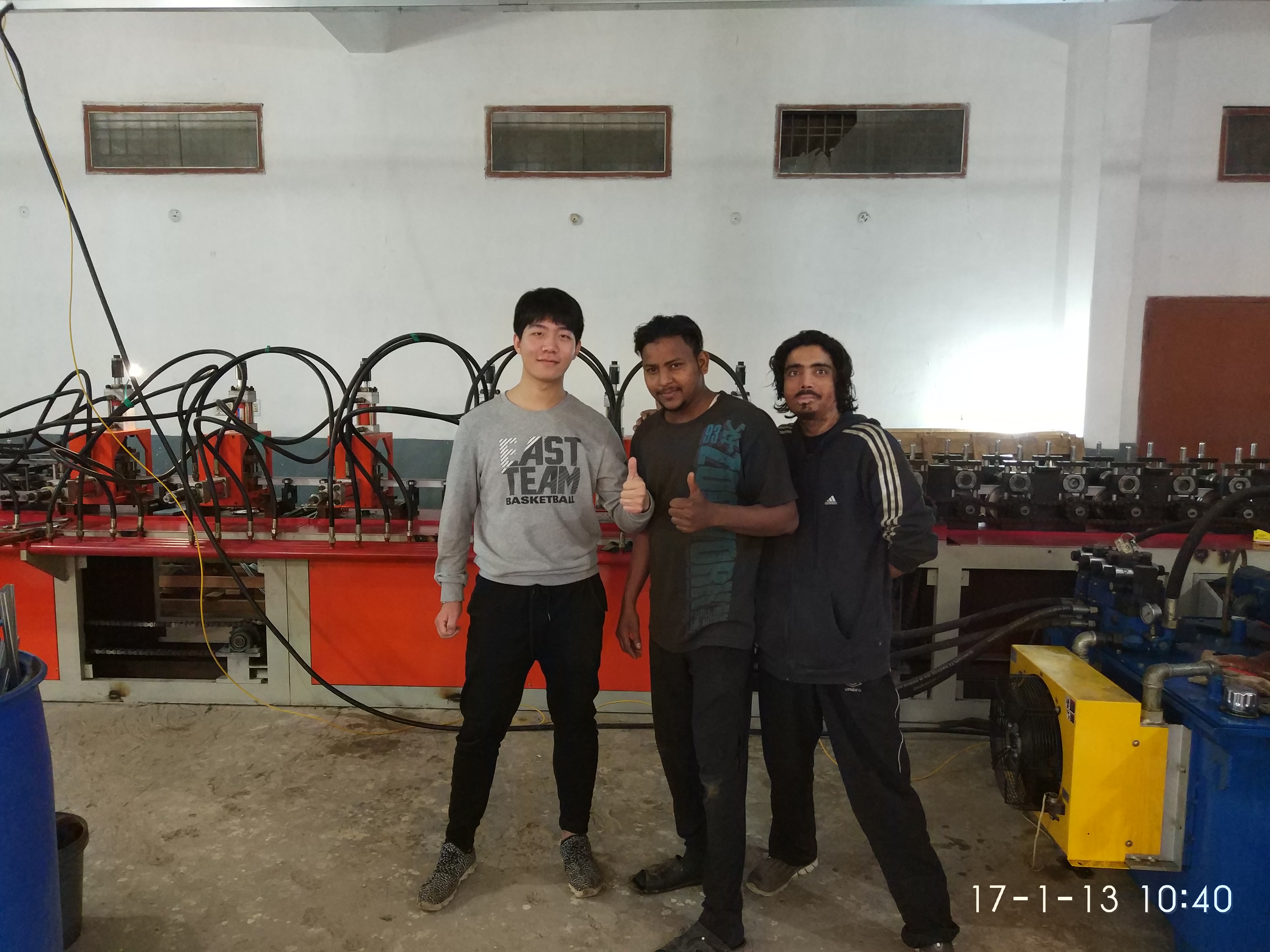 The engineer yu and manager Jooker were back from Pakistan yesterday.they come to karachi for loading and installing the machine. Engineer Yu is good at the light keel roll forming machine for many years, and this is his second time to installing main t and cross t roll forming machine for YUFA c...Read more »
