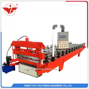 1. Descrição da máquina para painel de teto de parede de padrão europeu 840 Esta máquina formadora de rolo de painel para telhado de aço frio é projetada por nossos profissionais utilizando componentes de alto grau. O painel de cobertura tipo aço tem uma bela aparência e cores brilhantes. É amplamente utilizado em jardins, fábricas, resorts, hotéis, salas de exposições, áreas de férias, arquiteturas antigas e vilas modernas. Personalizado é bem-vindo. 2. Processo de trabalho A linha completa inclui desbobinador, máquina formadora, sistema de controle de computador ...