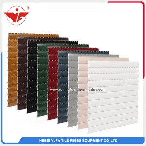 Description of Pu sandwich shutter door forming line Roll forming machines and lines for aluminium rolling shutter blinds are one of the main specializations for YUFA. When we study a rolling shutter profile, we rely on precisely defined design parameters (exclusive to YUFA), which ensure optimum closing and winding, silent operation, blackout and extreme rigidity: results of the continual winding and unwinding tests show that the life expectancy of profiles made with YUFA machines is twice ...