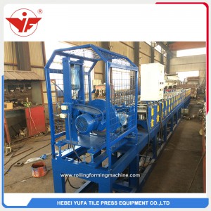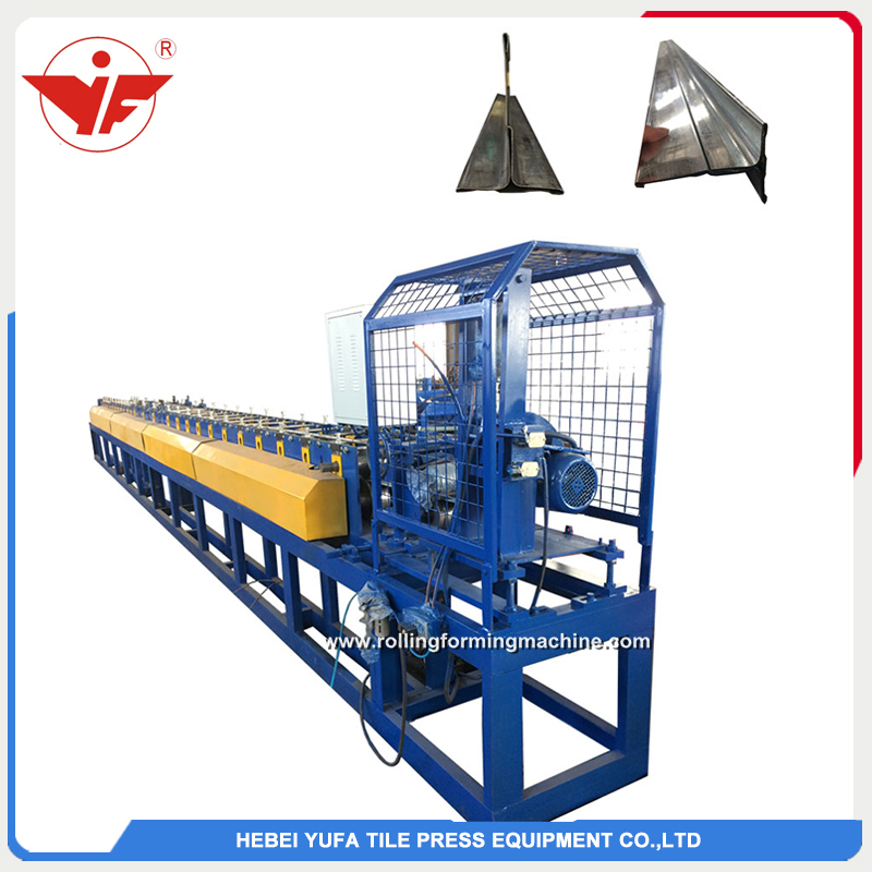 T type roll forming machine T type roll forming machine include one set 5 ton manual decoiler, feeding table, roll forming machine , hydraulic cutter and receiving table.Machine is controled by Delta PLC control system, we also have Mitsibishi PLC for option. Metal water gutter roll forming machine Parameters NO Type Specification 1 Raw material Type PPGI Feeding width 300 mm Thickness 1 mm 2 Decoiler Operation Manual Weight apacity 5 Tons 3 Main body Ro...