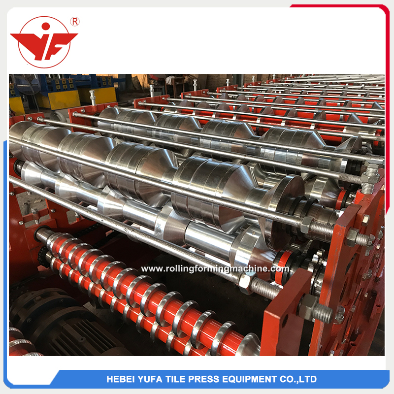 Common compared with two single machine, double layer roll forming machine save one bottom frame, one control box, one motor (while motor need increase power than one single machine)