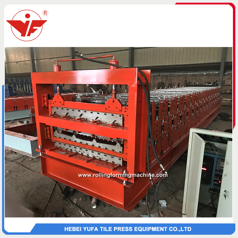 1.Description of Three layer roll forming machine To save space, some customer like double layer or three layer machine, sure it will also save some money for customer. Common compared with two single machine, double layer roll forming machine save one bottom frame, one control box, one motor (while motor need increase power than one single machine) Do you know that: Two layer of double layer machine can not work at same time, For example, up layer working, down layer can not work, and if u w...