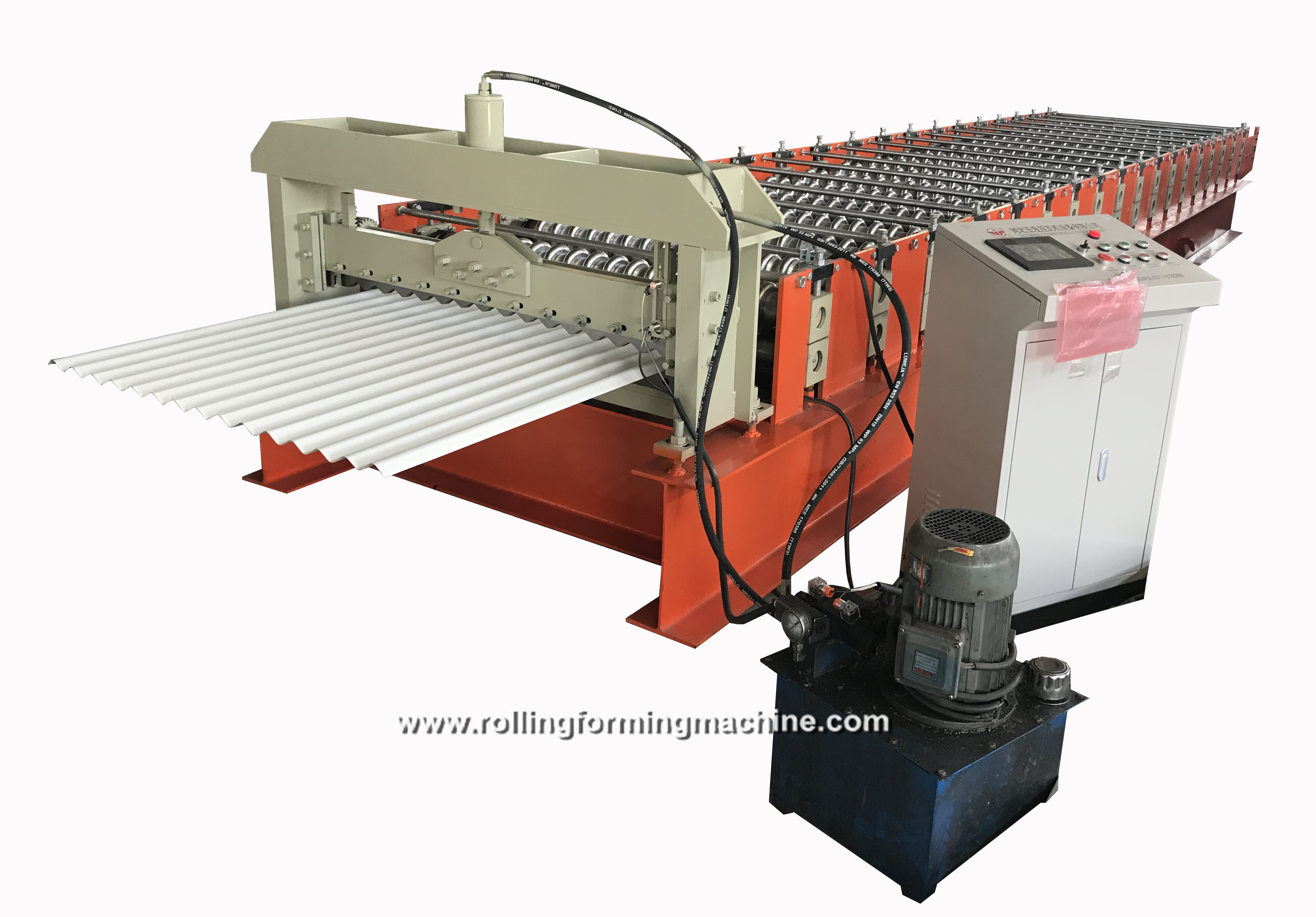 The complete corrugated roofing sheet making machine line includes de-coiler, main machine, computer controlling system and run out tables. Our machines are equipped with a computer controlling system. We simply program the pieces and length we need in the computer and the wave panel machine produces it automatically. The machines are easy to operate and running stable.