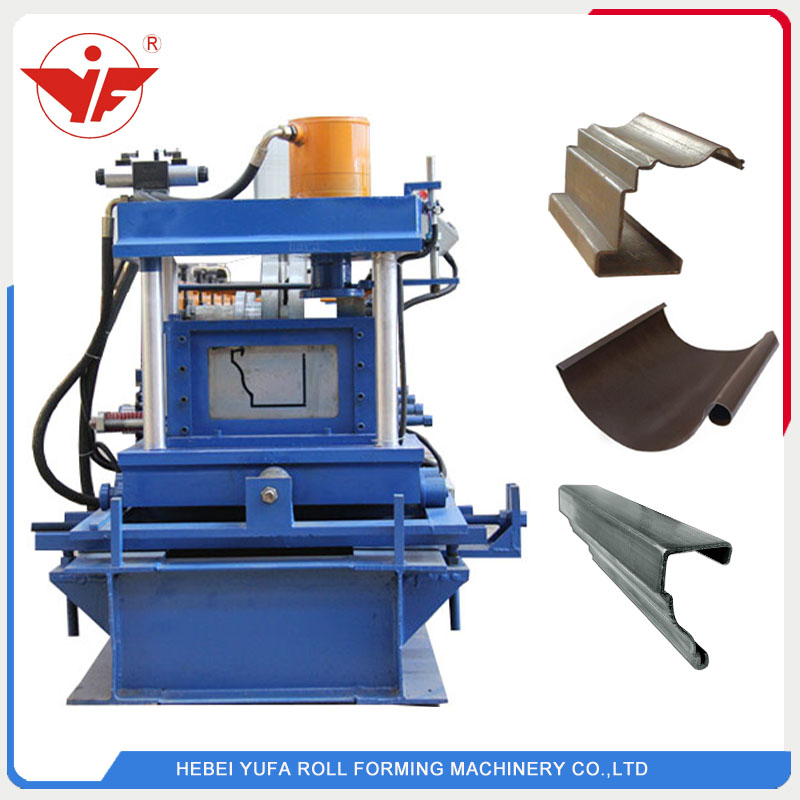 Metal water gutter roll forming machine Metal water gutter roll forming machine include one set 5 ton manual decoiler, feeding table, roll forming machine , hydraulic cutter and receiving table.Machine is controled by Delta PLC control system, we also have Mitsibishi PLC for option. Metal water gutter roll forming machine Parameters NO Type Specification 1 Raw material Type GI Feeding width 400 mm Thickness 1.8 mm 2 Decoiler Operation Manual Weight apacity ...